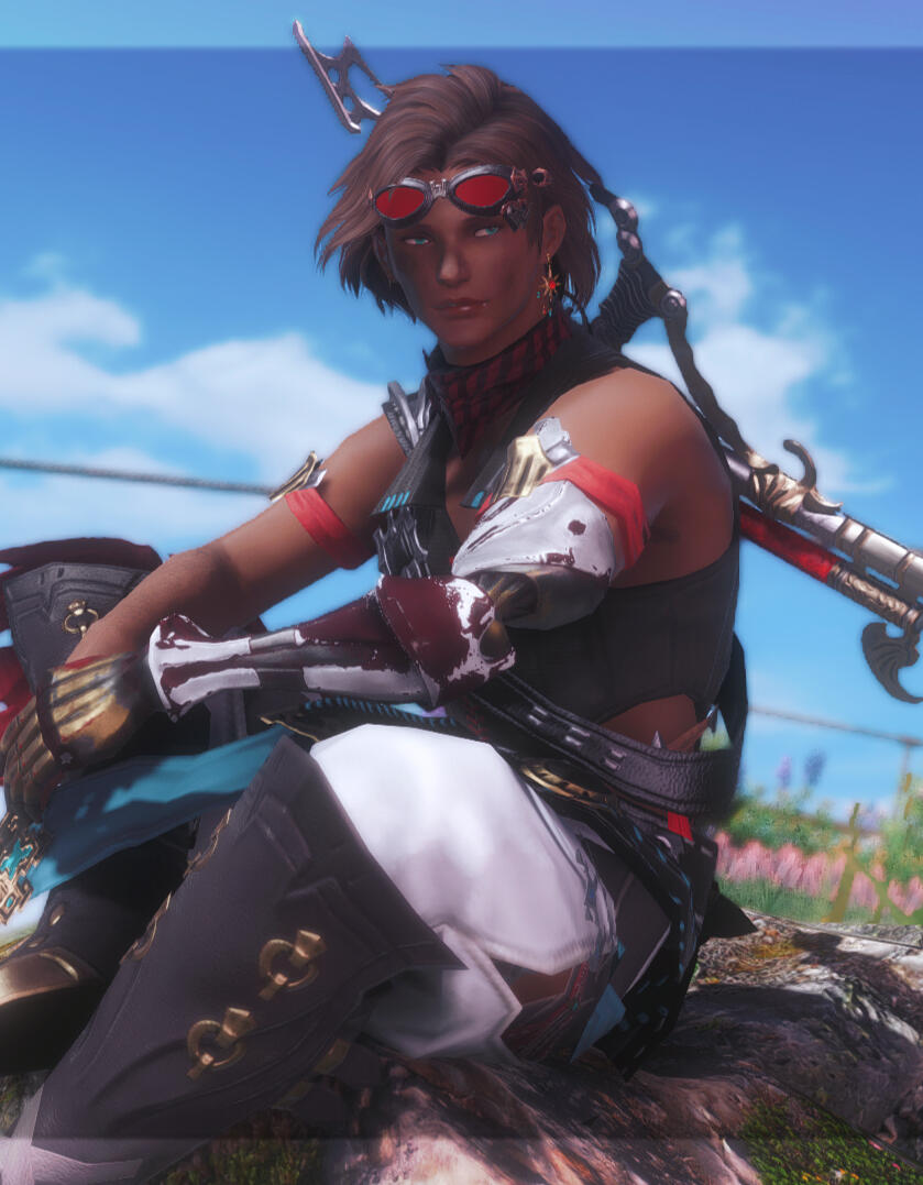 ⸸ Age: 80⸸ Height: 6'1"⸸ Gender: Cis Male (He/Him)⸸ Sexuality: Pansexual⸸ Class/Job: Viper/Voidsent Hunter⸸ Hooks: One eye with the other hidden beneath an eyepatch. Covered in scars (cuts, bites, bullets holes, etc.). Self-taught magitek mechanic and tinkerer. Warded aether.