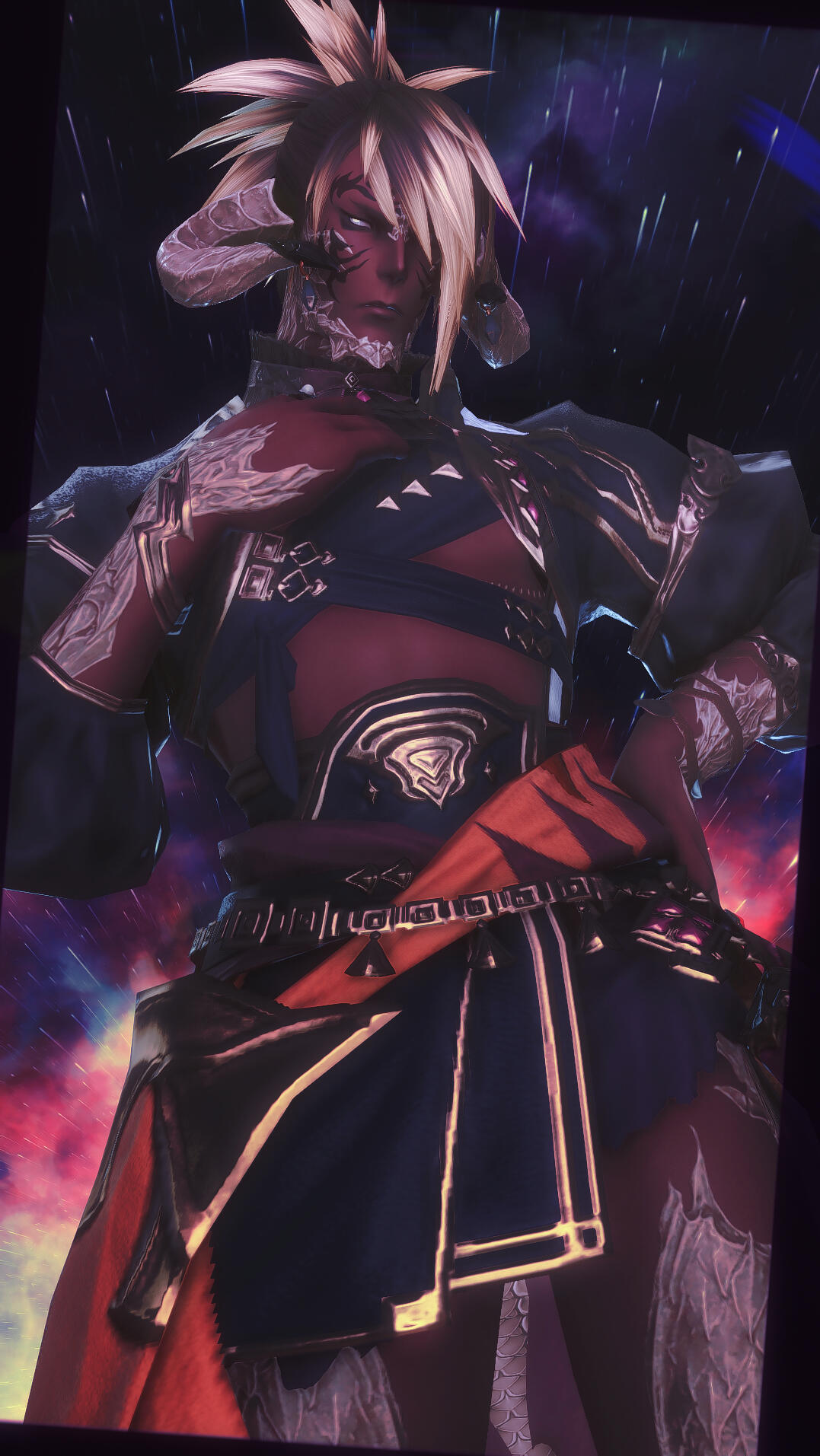 ♥︎ Age: What a rude question.♥︎ Height: 6'10"♥︎ Gender: Male? (He/Him)♥︎ Sexuality: Pansexual - Aromantic♥︎ Class/Job: Machinist/Ishgardian Escort and Information Broker♥︎ Hooks: Magnetizing presence. Noble Clientele. Warded Aether. Gun strapped to his thigh. Always willing to lend an ear or a hand... for a price.