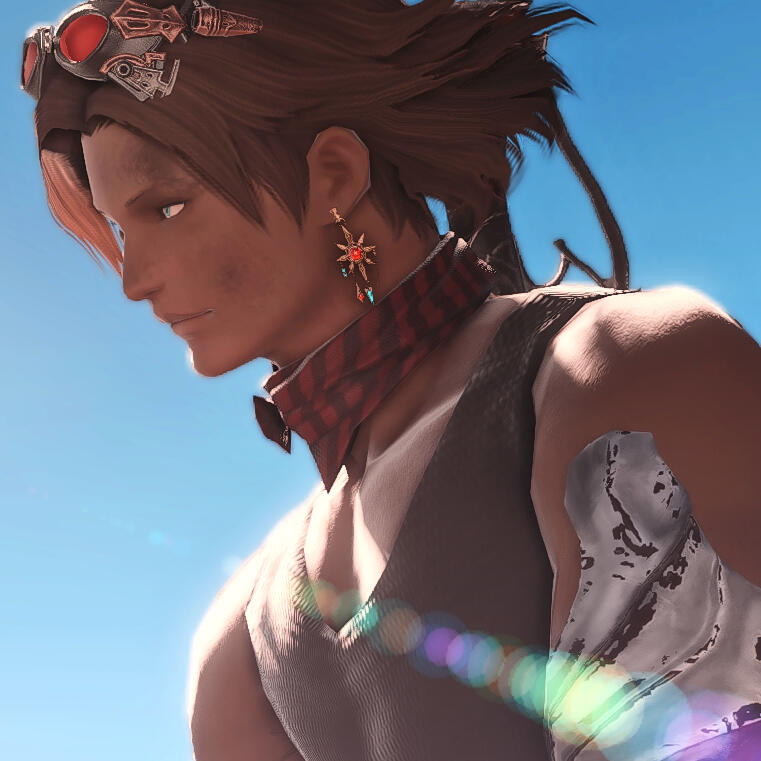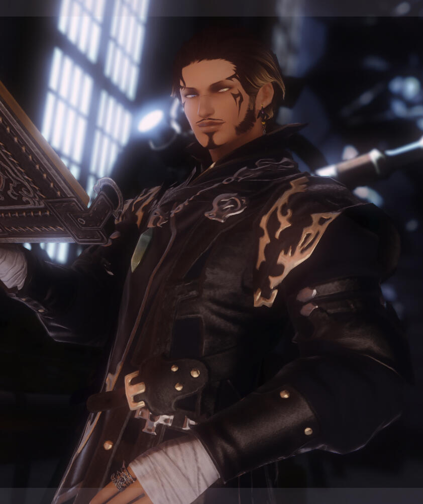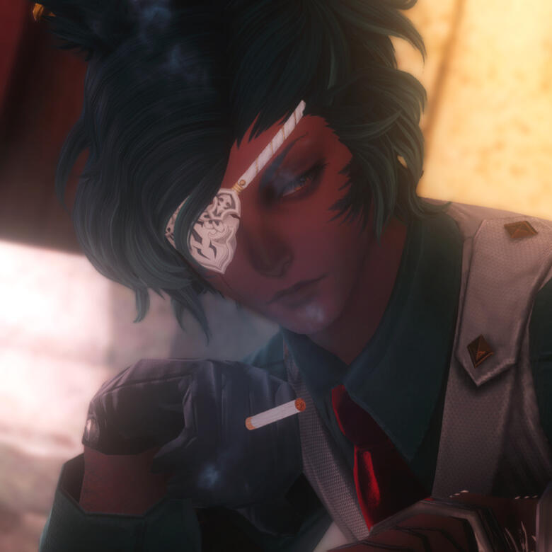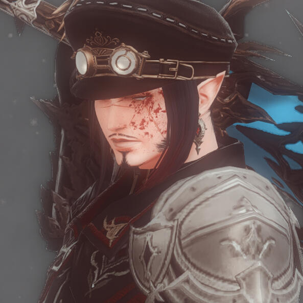 ⸸ Age: 80⸸ Height: 6'1"⸸ Gender: Cis Male (He/Him)⸸ Sexuality: Pansexual⸸ Class/Job: Viper/Voidsent Hunter⸸ Hooks: One eye with the other hidden beneath an eyepatch. Covered in scars (cuts, bites, bullets holes, etc.). Self-taught magitek mechanic and tinkerer. Warded aether.